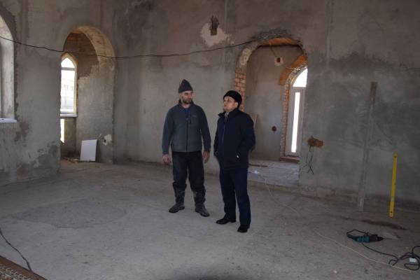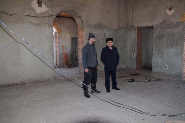 Также руководитель ДУМОо осмотрел, как ведется строительство подсобных зданий (помещения для омовения) во дворе строящейся мечети с. Октябрьское.