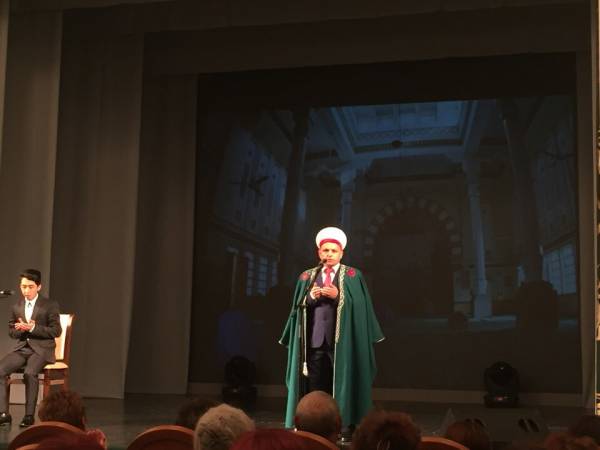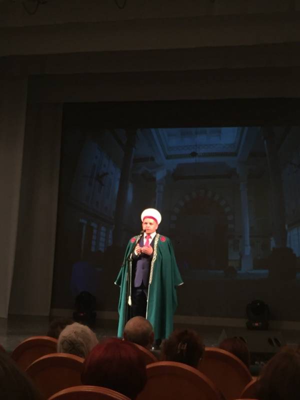 В эти праздничные дни перед началом концертной программы с поздравлениями и небольшой-проповедью наставлением перед зрителями выступил председатель РДУМОо Альфит хазрат Шарипов.