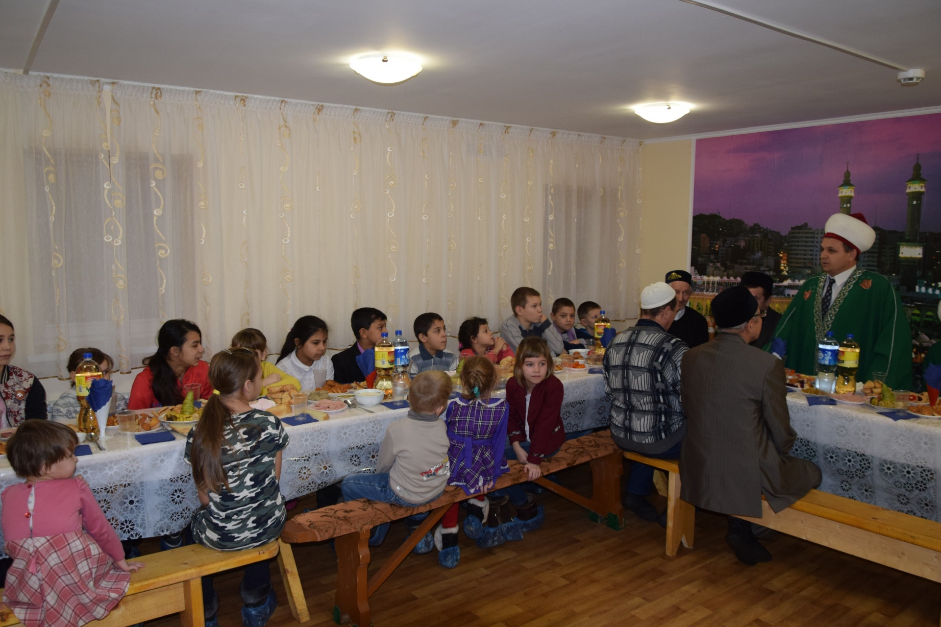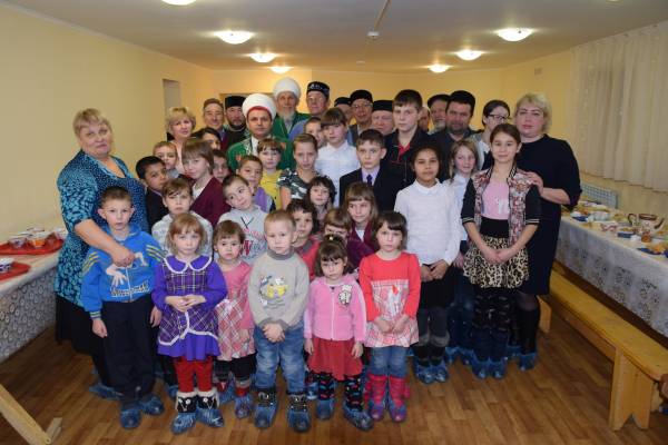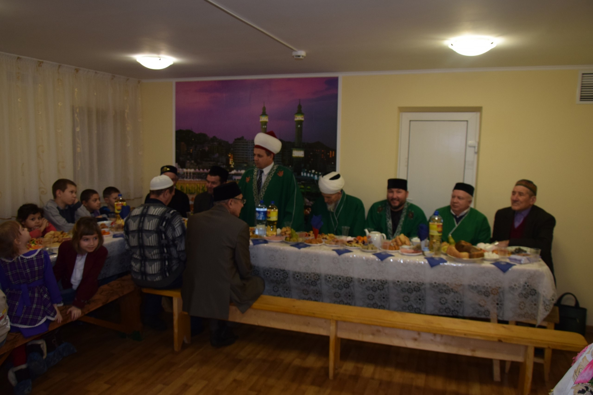 Здесь в рамках социальной работы и патриотического воспитания подрастающего поколения в мечети состоялся праздничный обед, организованный мусульманами Бугуруслана совместно с РДУМ Оренбургской области для детей из дома детства.
