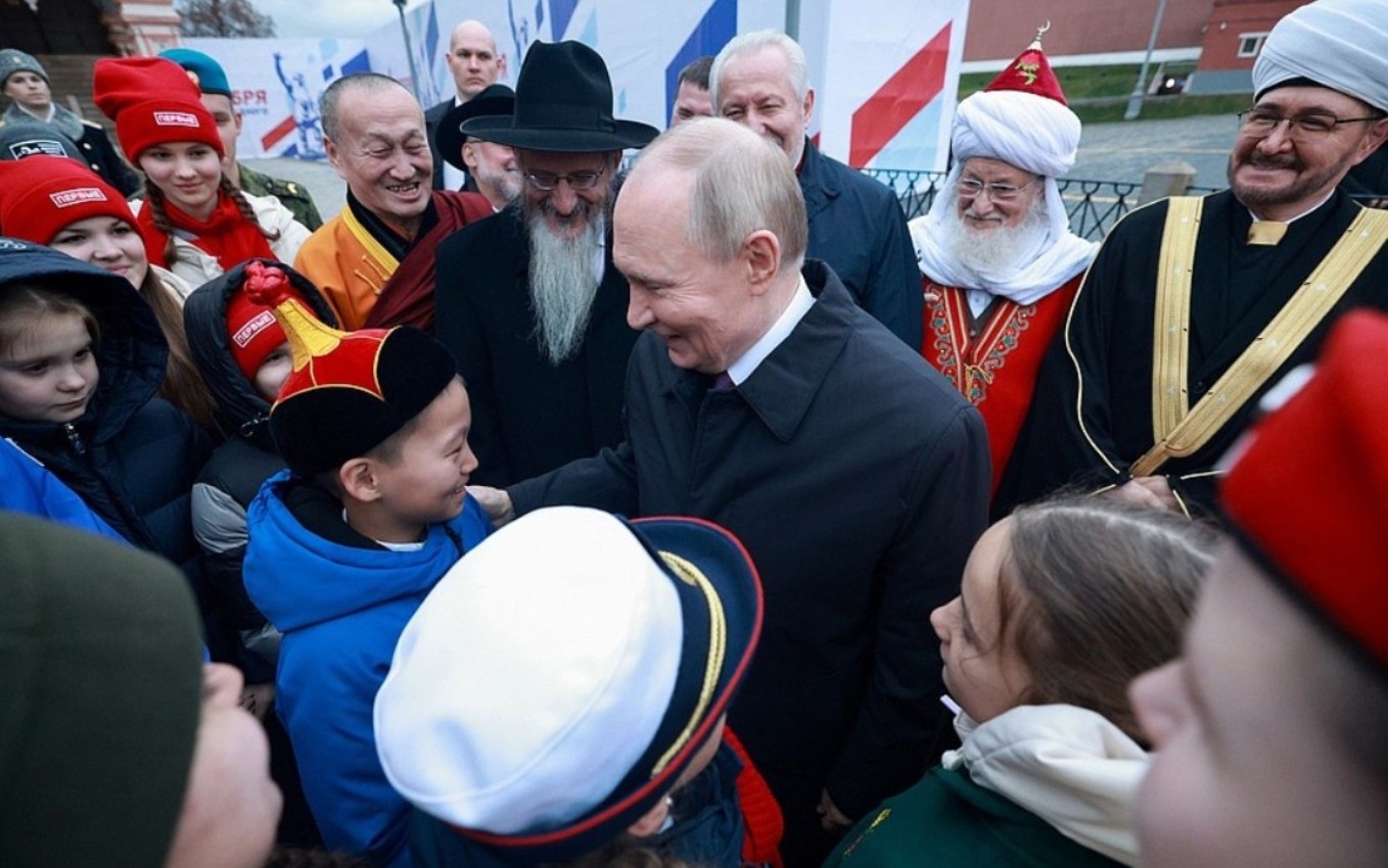 По традиции, в День народного единства на Красной площади в Москве Президент России Владимир Владимирович Путин встретился с духовными лидерами страны и активистами молодежных общественных организаций. В событии приняли участие: Патриарх Московский и всея Руси Кирилл; Шейх-уль-Ислам, Верховный муфтий, Председатель ЦДУМ России Талгат Сафа Таджуддин; председатель ДУМ РФ, муфтий Равиль Гайнутдин; председатель ДСМР, муфтий Альбир Крганов; глава Буддийской традиционной сангхи России Дамба Аюшеев; Главный раввин России (ФЕОР) Берл Лазар; Митрополит Русской православной старообрядческой церкви Корнилий; начальствующий епископ Российского объединенного Союза христиан веры евангельской Сергей Ряховский; а также представители «Движения первых», «Юнармии» и «Волонтеров Победы», центра «Воин», подопечные Комитета семей воинов Отечества, фонда «Защитники Отечества», Ассоциации ветеранов СВО, члены Поискового движения России и Общероссийского народного фронта.