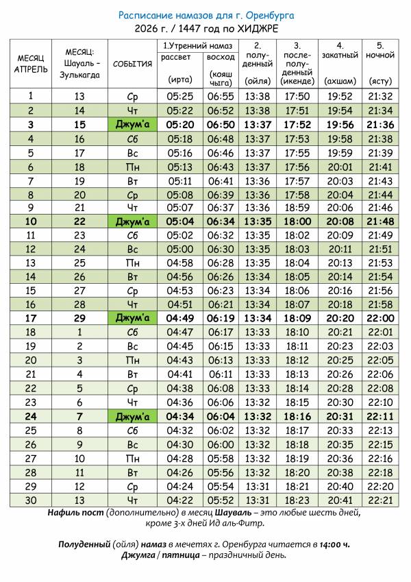 Календарь исламских праздников и памятных дат ЦДУМ России 2025