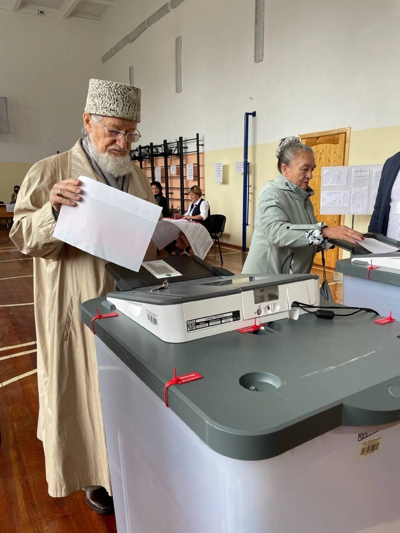 Избирательный участок в посёлке Зубово Уфимского района Республики Башкортостан для того, чтобы исполнить свой гражданский долг посетил Председатель Центрального духовного управления мусульман России, Верховный муфтий, Шейх-уль-Ислам Талгат Сафа Таджуддин.