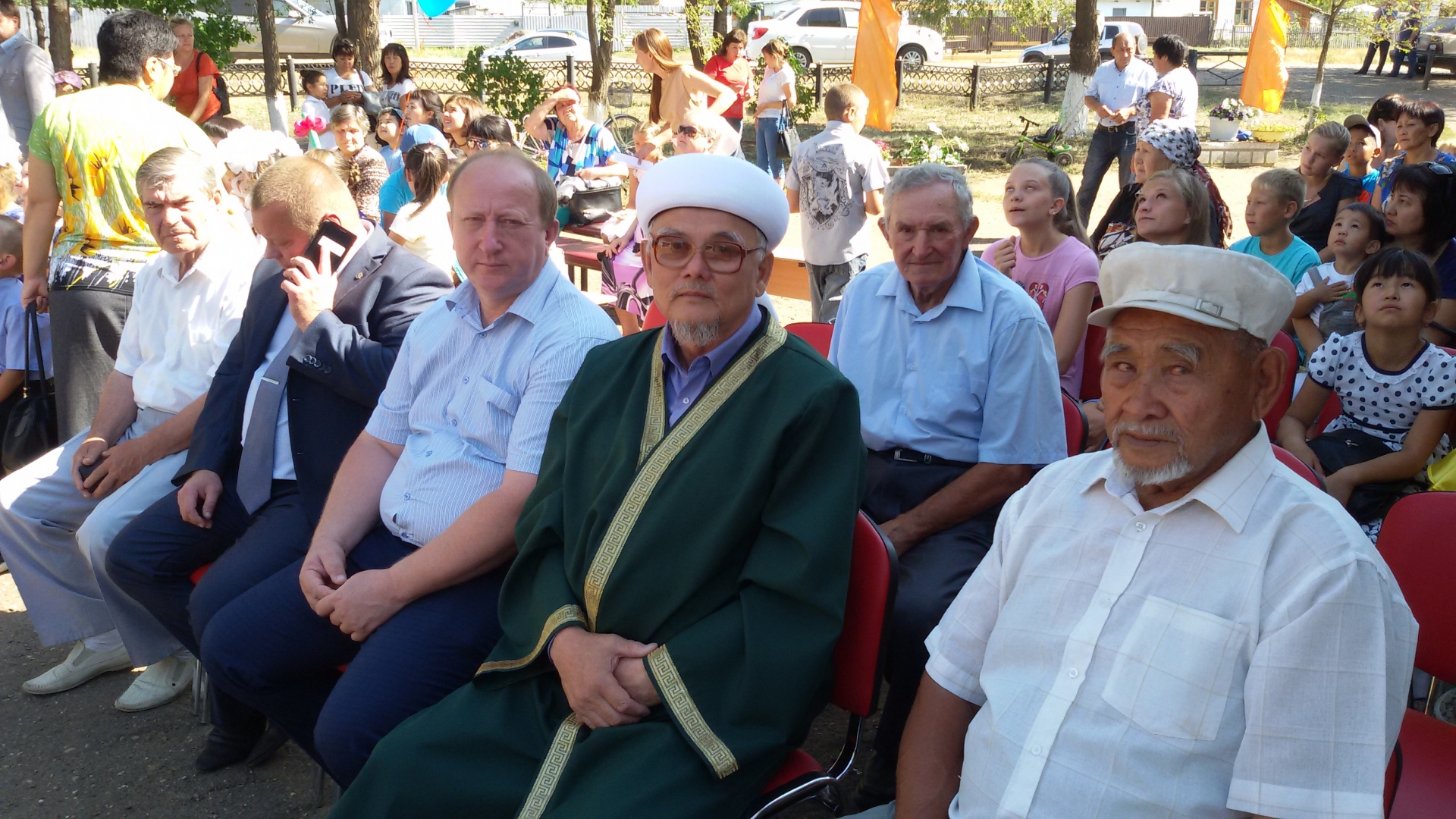 От имени РДУМОо и ММРО поселка, хазрат поздравил присутствующих и вручил первоклассникам школьные рюкзакии принадлежности к школе.