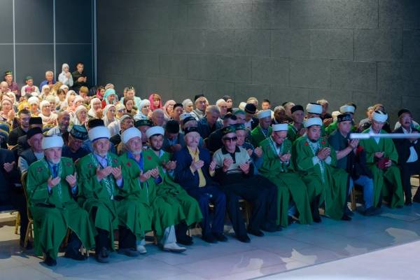 Высшей точкой вечера стало совместное чтение Мавлида и Салавата, как это традиционно делали наши предки. Весь зал встал в знак уважения к Пророку Мухаммаду (да благословит его Аллаh и приветствует), гости хором произнесли приветствие Божьему Посланнику (мир ему). Этот момент объединил всех участников и подчеркнул торжественность и духовную значимость события.