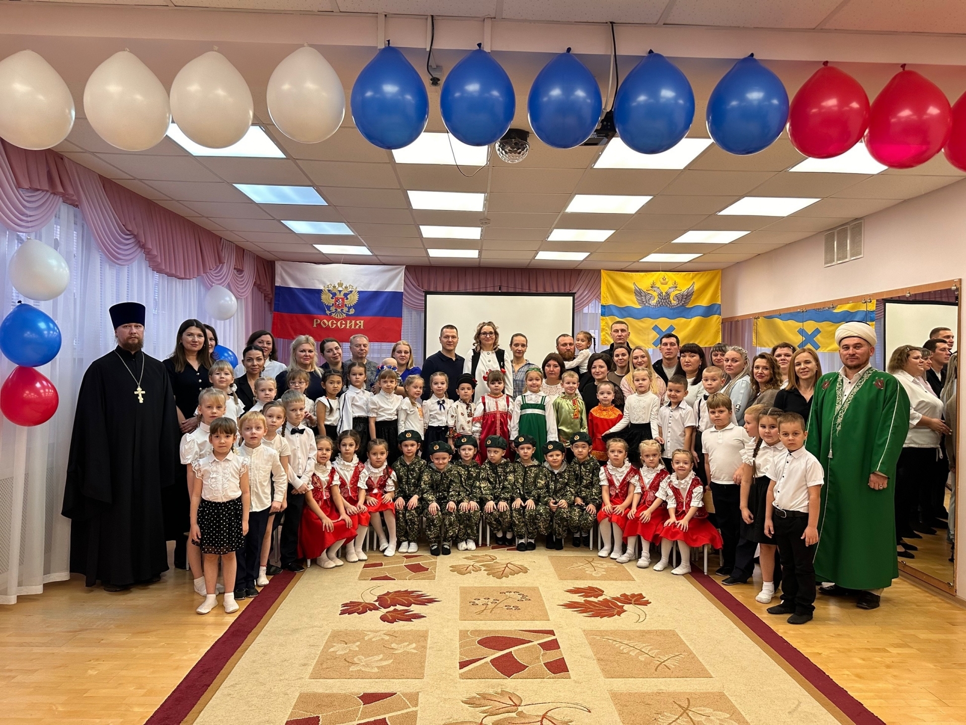 В детском саду состоялся замечательный праздник, посвященный Дню народного единства. Это мероприятие стало ярким примером дружбы народов и единения культур. Представители разных вероисповеданий - имам-хатыб мечети «Рамазан» Ренат хазрат Мадьямов и Иерей Евгений Калашенок, клирик храма святого Архистратига Божия Михаила г. Оренбурга - приняли активное участие в празднике, подчеркнув важность взаимопонимания и уважения друг к другу.