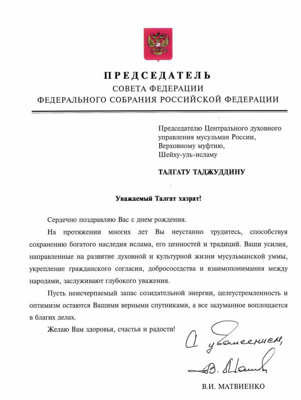 В адрес Шейх-уль-Ислама Талгата Сафа Таджуддина поступили многочисленные поздравления по случаю Дня рождения