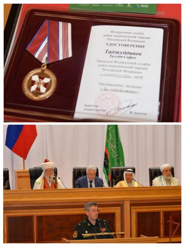 Верховному муфтию вручили медаль Росгвардии «За содействие»